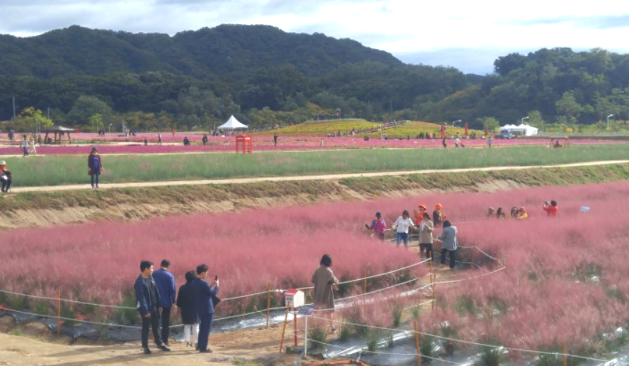 나리공원은 가을에 축제를 여는 천일홍으로 유명한 곳인데 그 옆으로 핑크 뮬리 밭이 조성되어 있다.