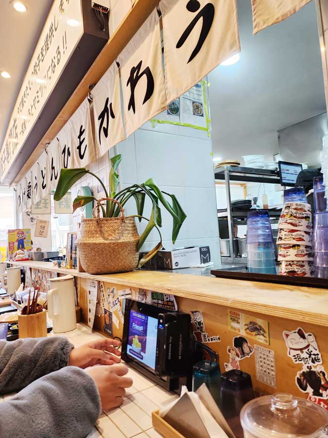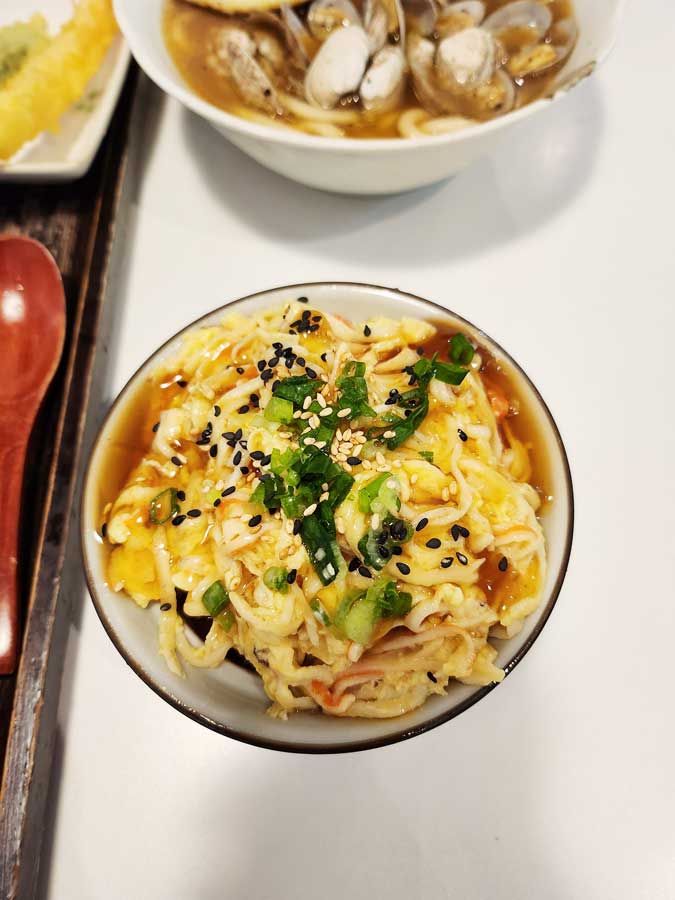 넓적 우동, 미니 달걀 게살 덮밥을 주문했다.