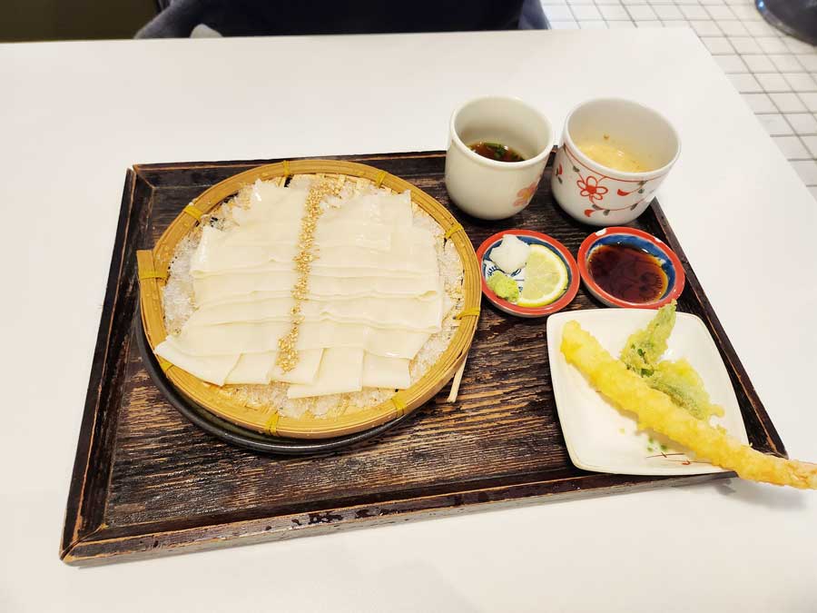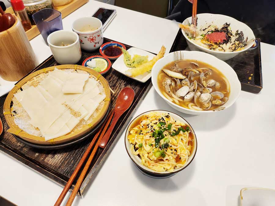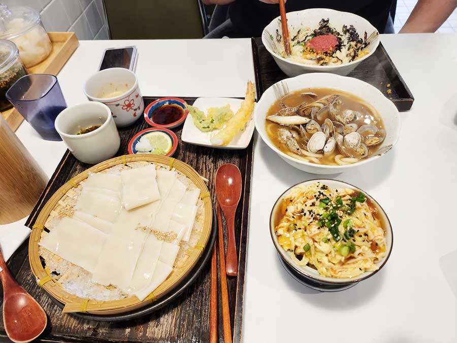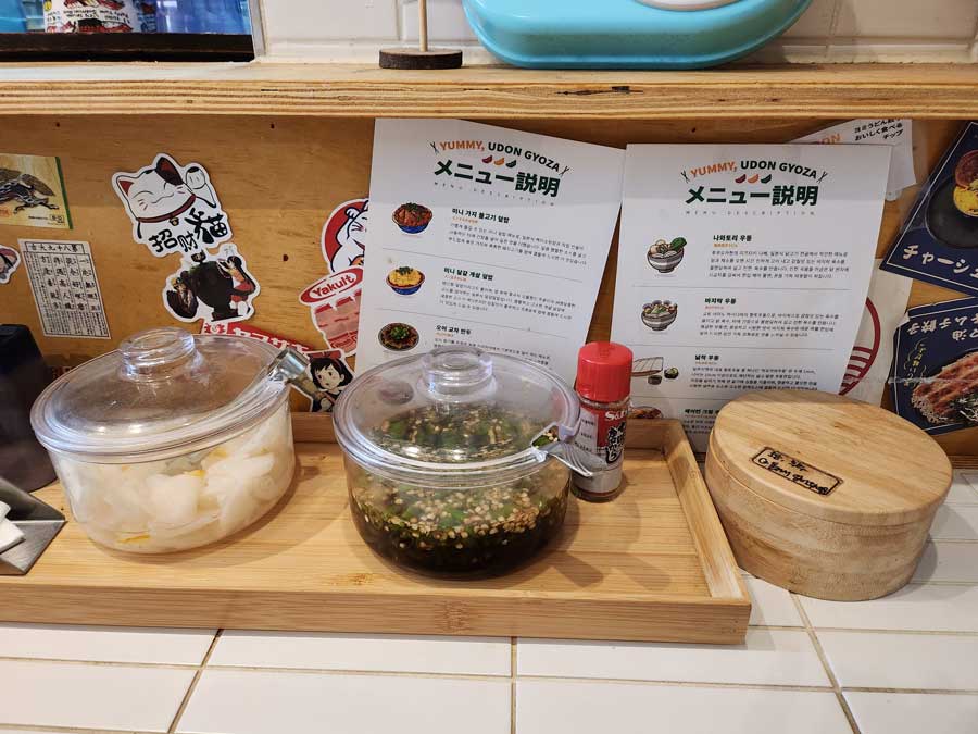 넓적 우동, 미니 달걀 게살 덮밥을 주문했다.