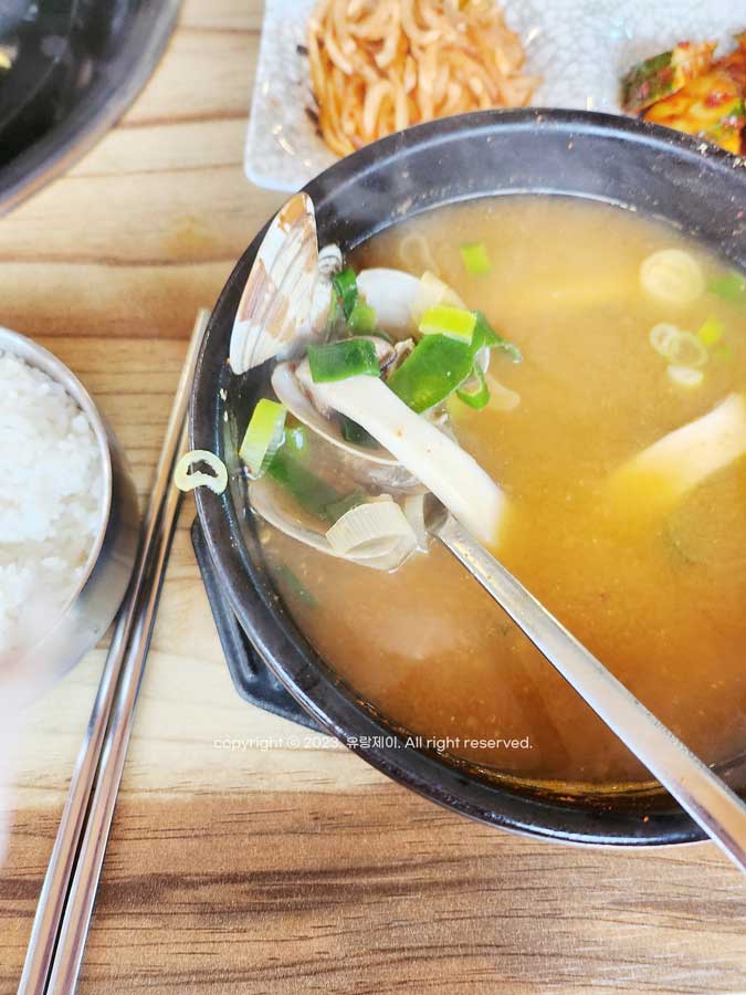 바지락도 들어있고 야채들도 소량 있는데 맛이 너무 된장국이다. 그냥 된장국.