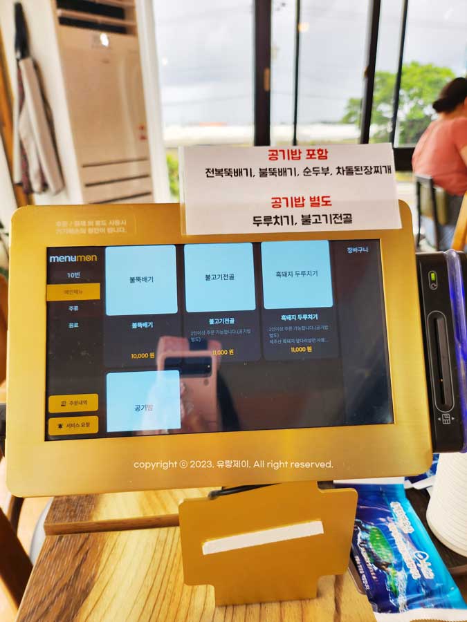창가가 있는 안쪽 자리로 잡고 주문은 태블릿으로.