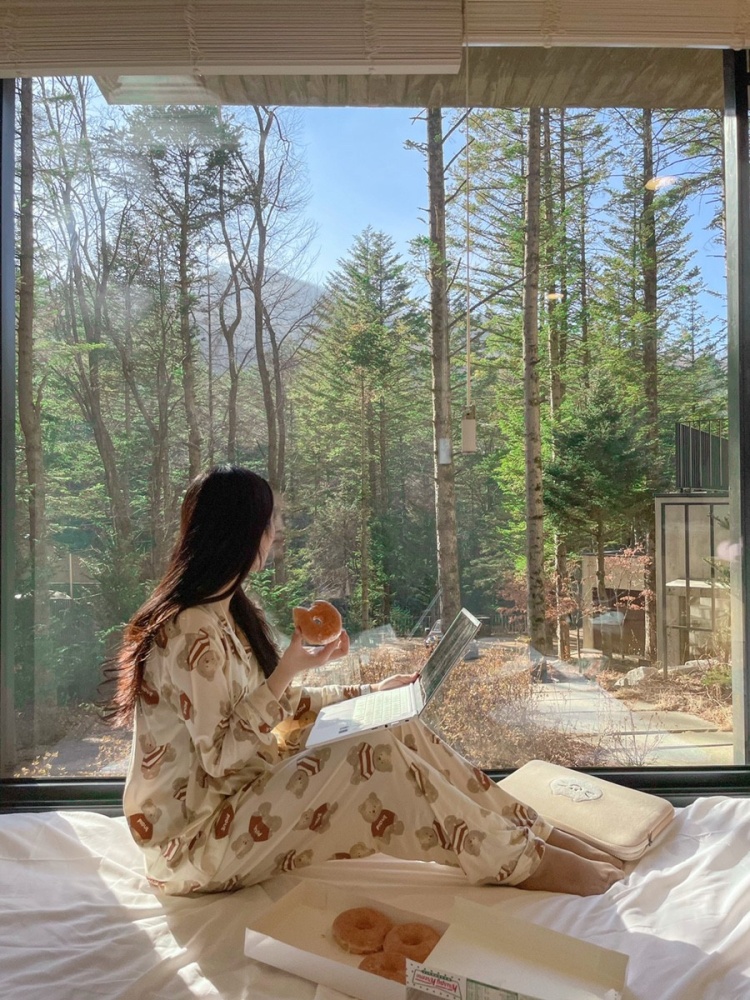 홈페이지를 보니 강릉 말고도 충청도 여러 군데와 제주도에도 지점들이 있는 체인 펜션이다. 객실의 통창을 통해 숲과 바다를 동시에 즐길 수 있는 뷰를 선사하고 있다.