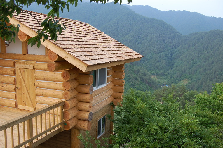 한국의 알프스 같은 뷰를 볼 수 있다는 삼척의 통나무집 펜션, 향초 목원. 이런 첩첩산중을 어떻게 들어가나 싶을 정도로 산속 한가운데 위치하고 있다.